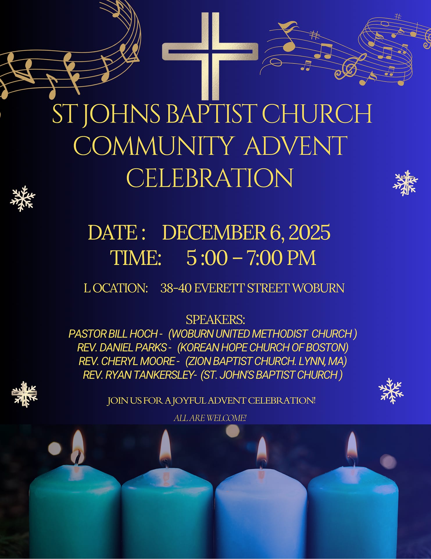 Welcome to St. John’s Baptist Church, where fellowship and worship are at the heart of our community. Located in the center of Woburn, Massachusetts, we invite you to join us for a transformative worship experience.