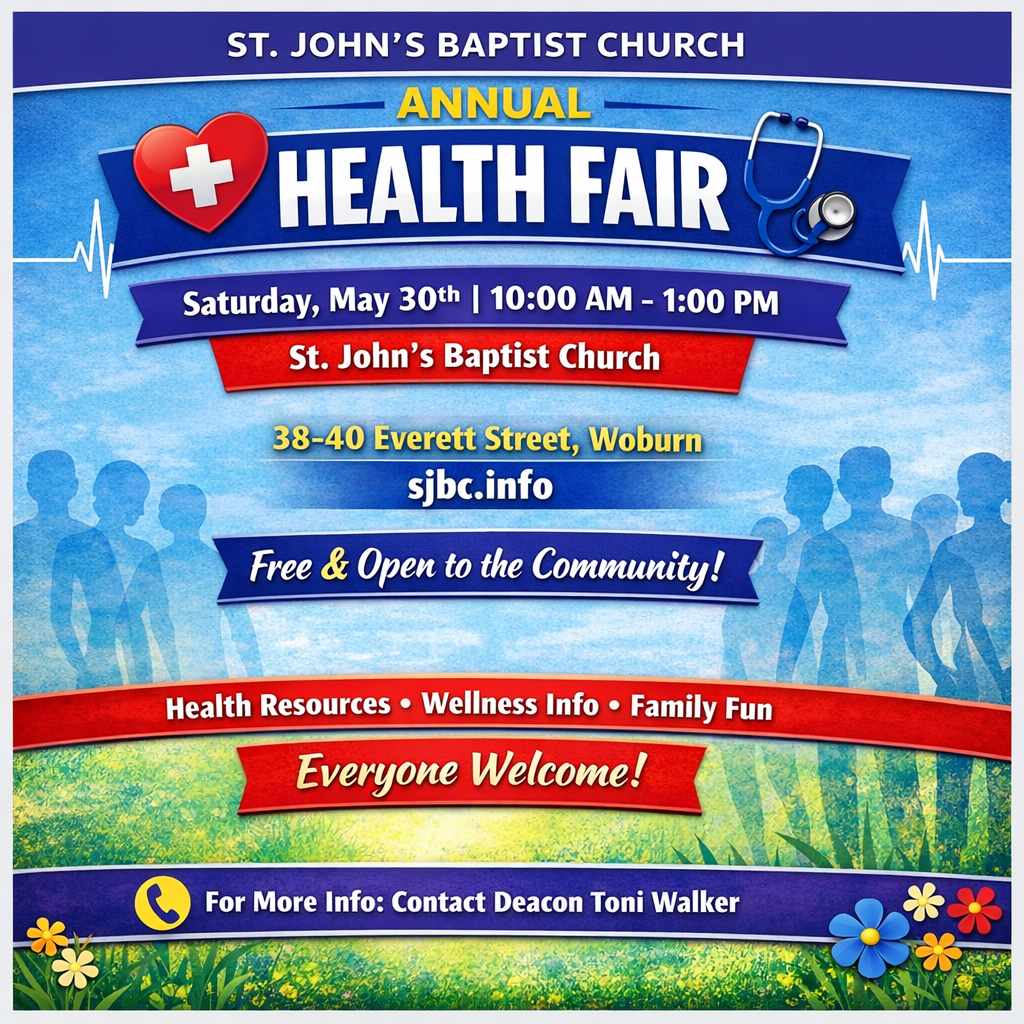 Featured38 Everett St Woburn, MA, United StatesJoin us for the St. John’s Baptist Church Health Fair on Thursday, May 30th, from 10:00 AM to 1:00 PM! Connect with valuable resources and organizations. Bring your family and […]